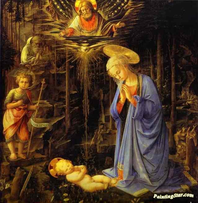 The Adoration, With The Infant Baptist And St. Bernard, Art Painting by Fra Filippo Lippi