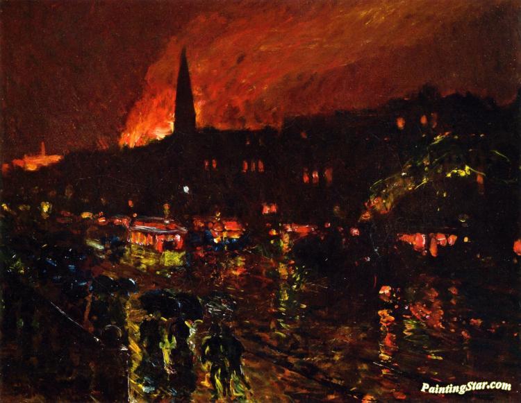 The Alarm, Firelight, Boston, Art Painting by Frederick Childe Hassam