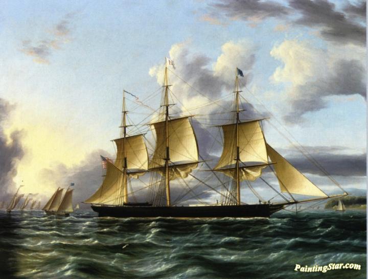 The American Clipper 'Architect' off a Coast with Pilot Boat, a Regatta and other Shipping in the Distance, Art Painting by James E. Buttersworth