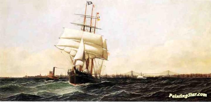 The "American" Leaving New York Harbor, Art Painting by Antonio Jacobsen