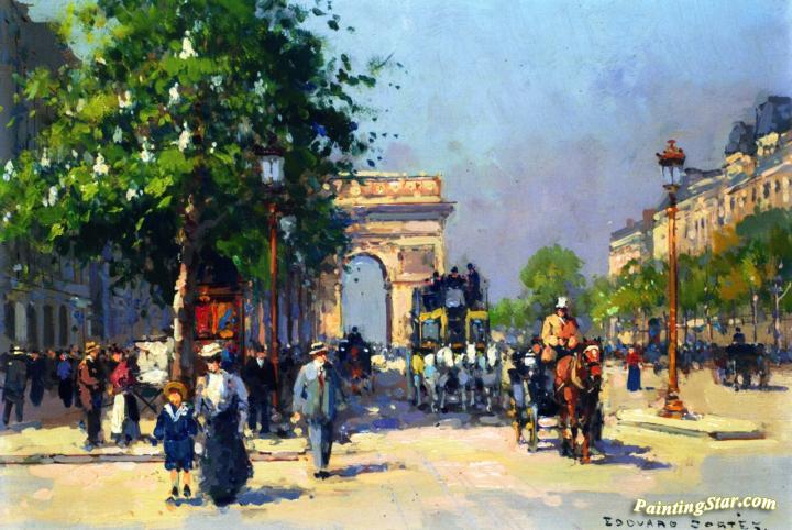 The Avenue of the Champs-Elysèes in Summer, Art Painting by Edouard Léon Cortes