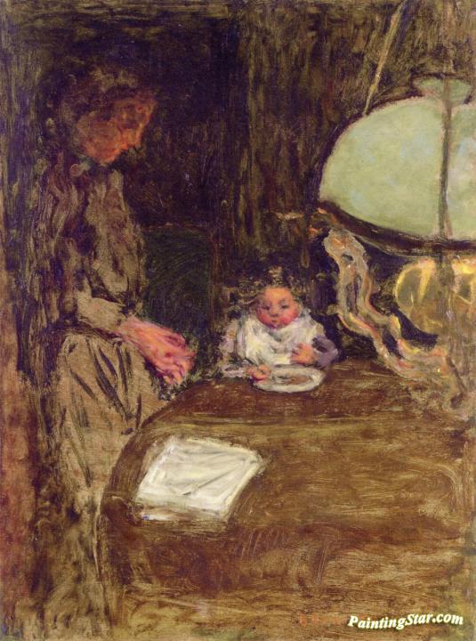 The Baby's Dinner with a Green Lamp, Art Painting by Pierre Bonnard