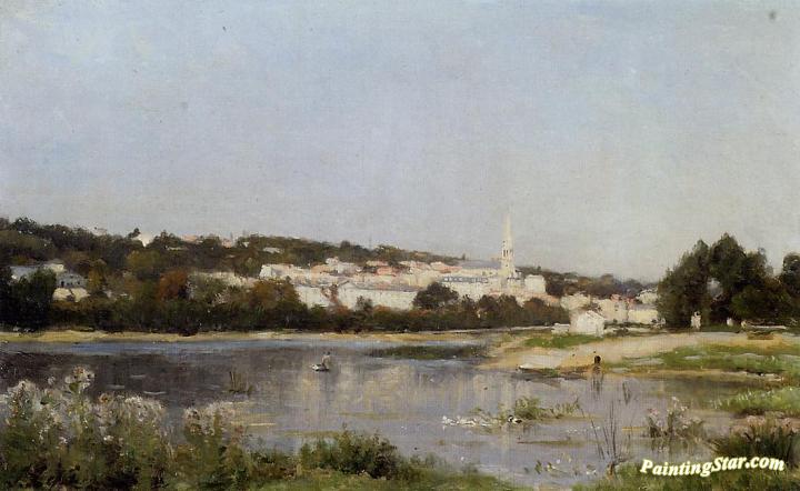 The Banks of the Saine at St. Cloud, Art Painting by Stanislas Lepine