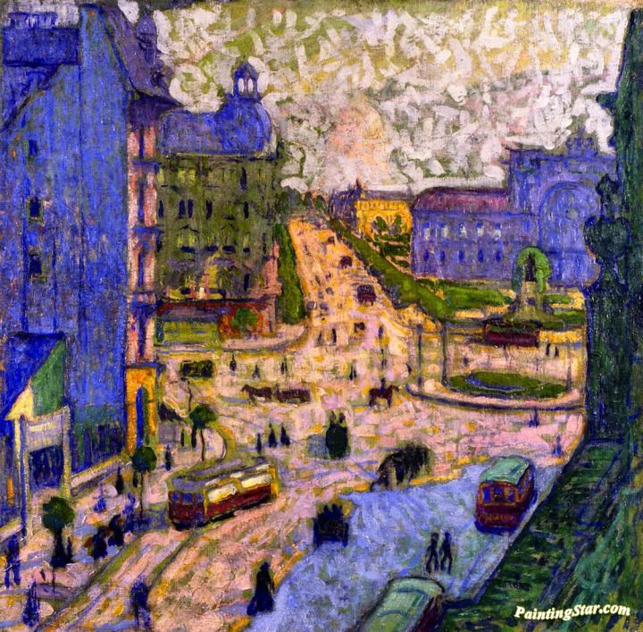 The Baross Square, Art Painting by Sándor Ziffer
