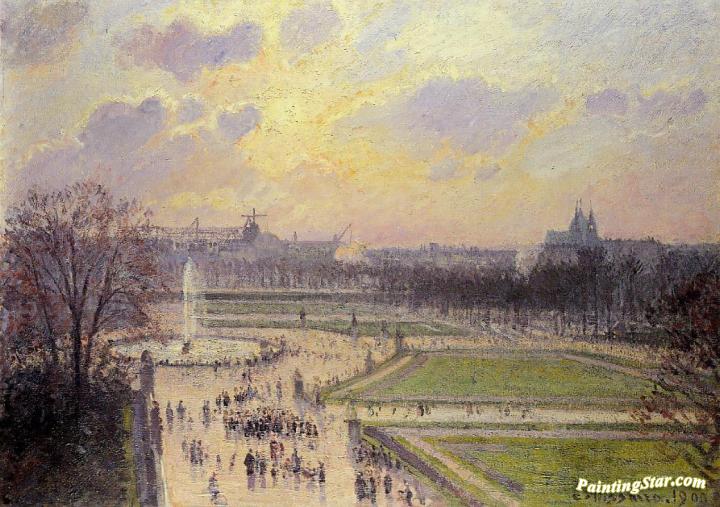 The Bassin des Tuileries: Afternoon, Art Painting by Camille Pissarro