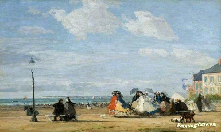 The Beach at Trouville: The Empress Eugenie, Art Painting by Eugène-Louis Boudin