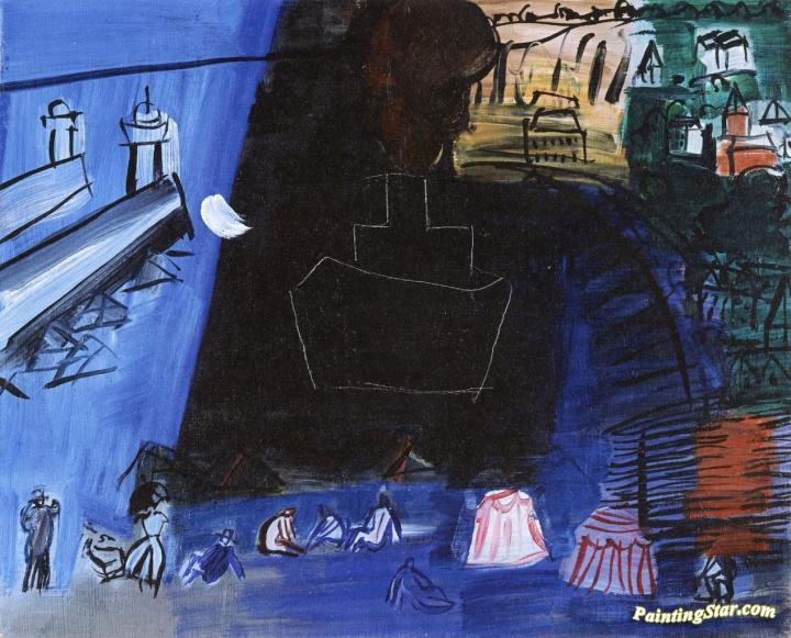 The Black Freighter, Bathers and Tents on the Beach, Art Painting by Raoul Dufy