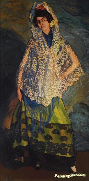 The Brunette, With White Shawl, Art Painting by Ignacio Zuloaga y Zabaleta