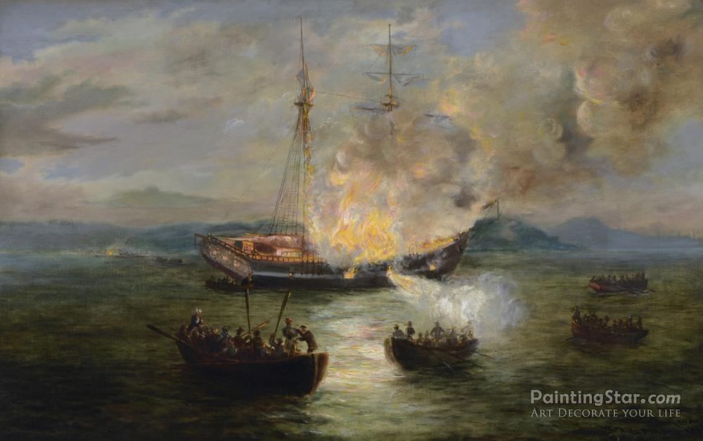 The Burning Of The Gaspee, Art Painting by Charles De Wolf Brownell