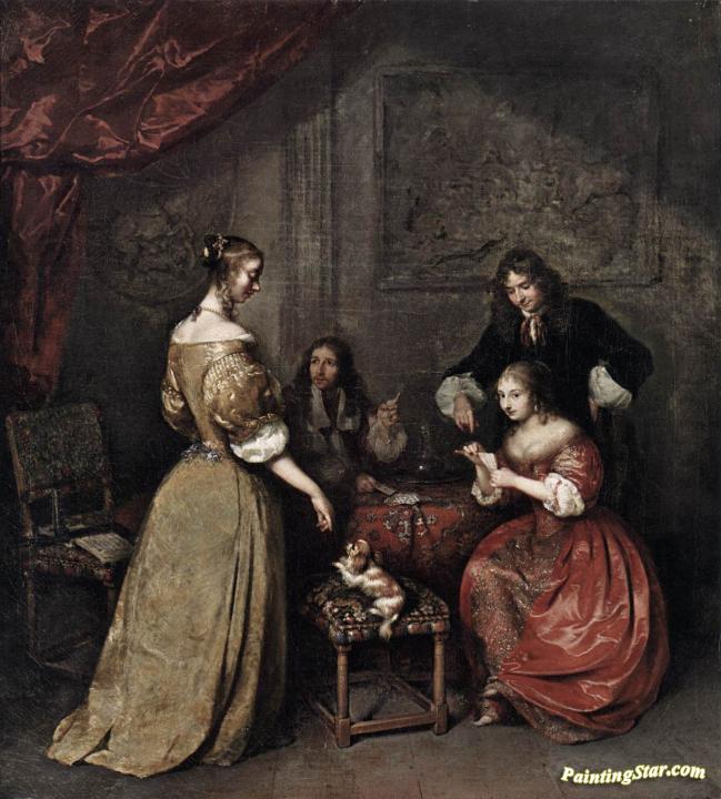 The Card Party, Art Painting by Caspar Netscher