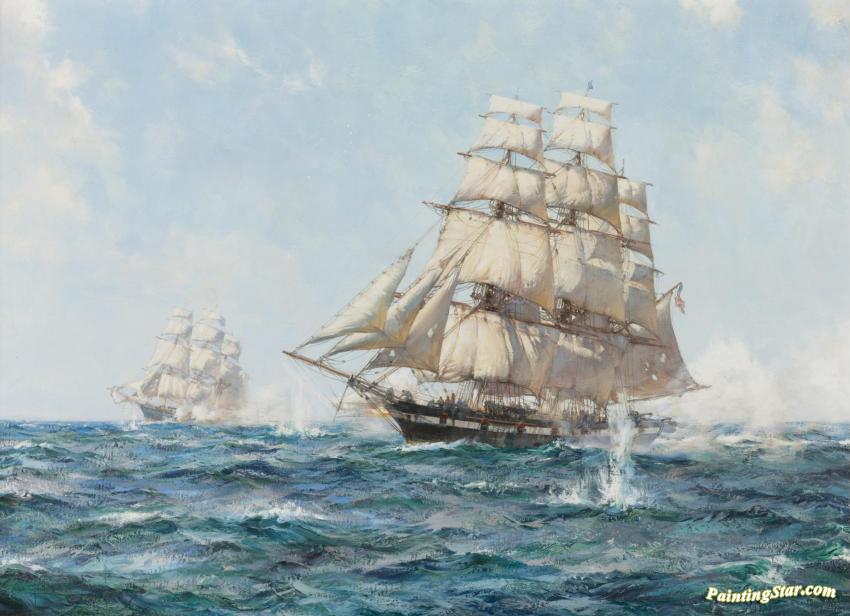 The Chasseur In Action, Art Painting by Montague Dawson
