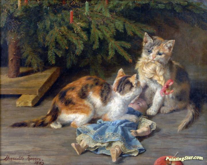 The Christmas Spat, Art Painting by Henriette Ronner-Knip