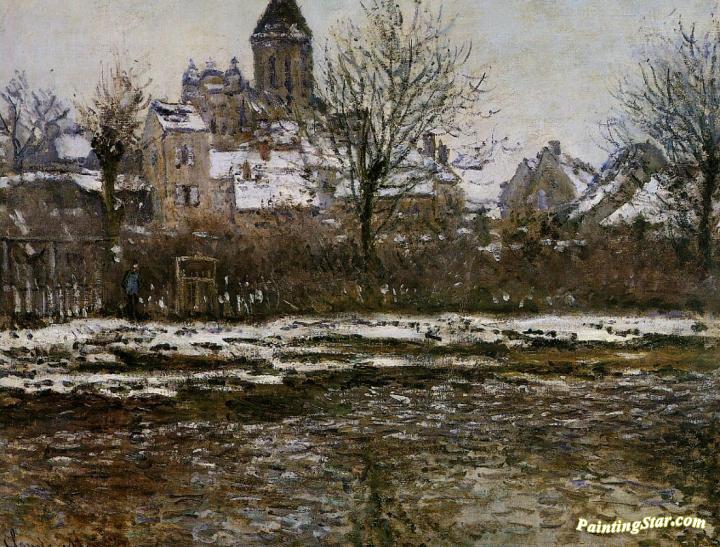 The Church at Vetheuil, Snow, Art Painting by Claude Oscar Monet