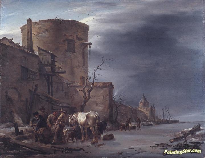 The city wall of Haarlem in the winter., Art Painting by Nicolae Berchem