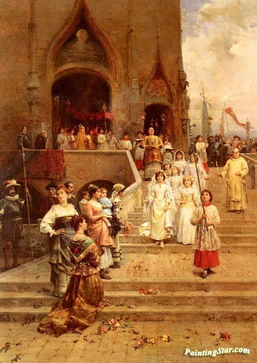 The Confirmation Procession, Art Painting by Cesare Auguste Detti