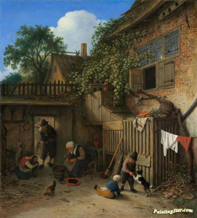 The Cottage Dooryard, Art Painting by Adriaen van Ostade
