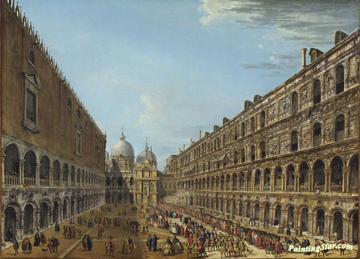 The Departure Of The Nuncio Stoppani From The Doge's Palace After His Audience, Art Painting by Antonio Joli