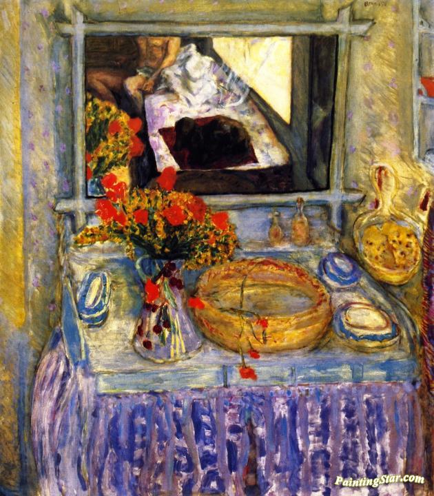 The Dressing Table with a Bunch of Red and Yellow Flowers, Art Painting by Pierre Bonnard