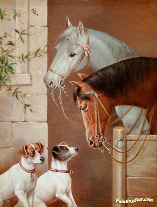 The encounter at the horse barn, Art Painting by Carl Reichert