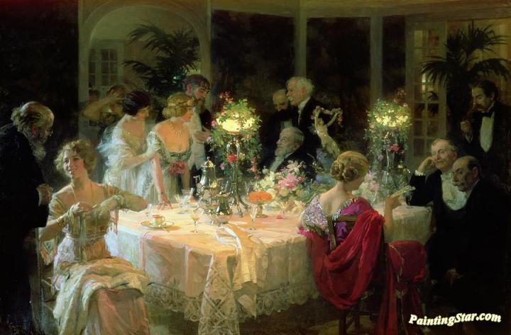 The End Of Dinner, Art Painting by Jules-Alexandre Grun