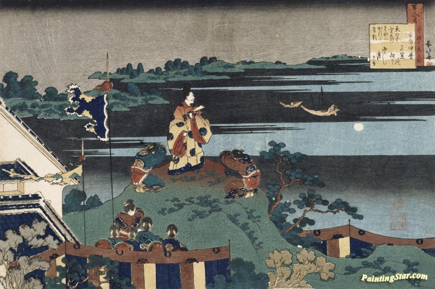 The Exiled Poet Nakamaro, Art Painting by Katsushika Hokusai