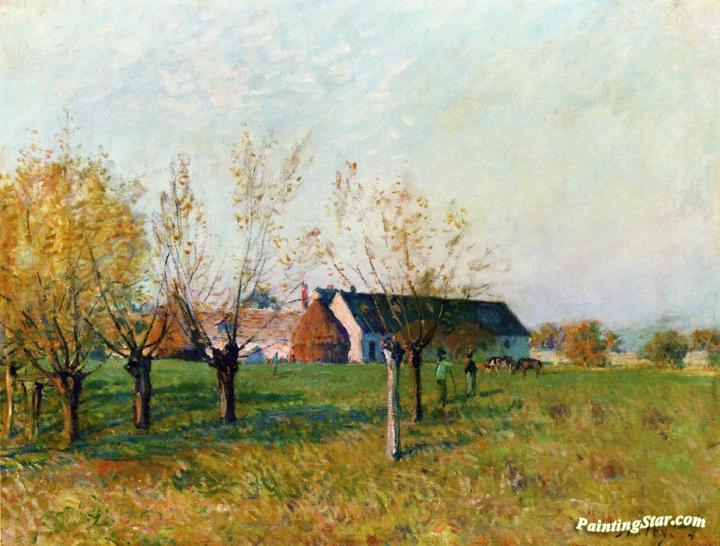 The Farm At Trou D'enfer, Autumn Morning, Art Painting by Alfred Sisley