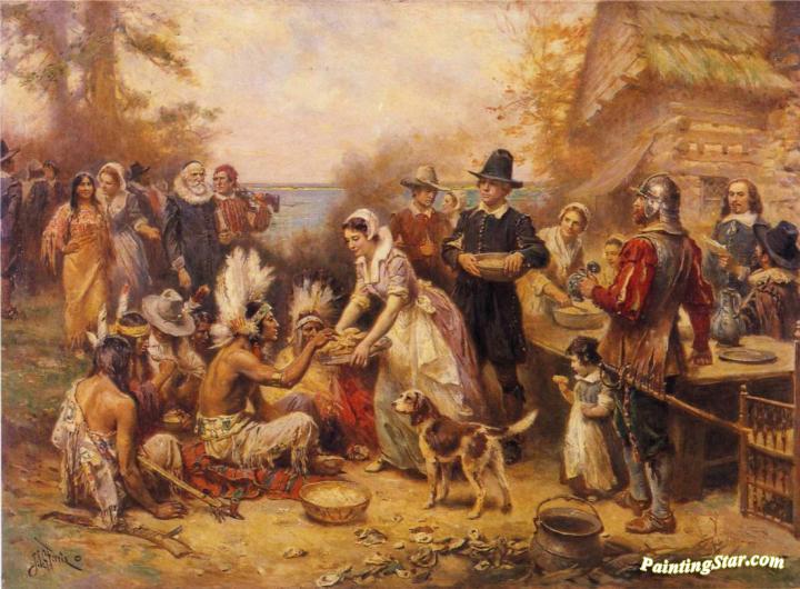 The First Thanksgiving, 1621, Art Painting by Jean Leon Gerome Ferris