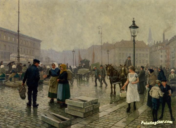 The Fish Market at Gammelstrand Copenhagen, Art Painting by Paul Gustave Fischer