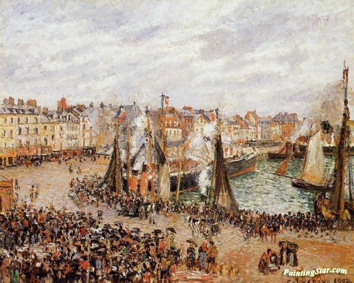 The Fishmarket, Dieppe: Grey Weather, Morning, Art Painting by Camille Pissarro