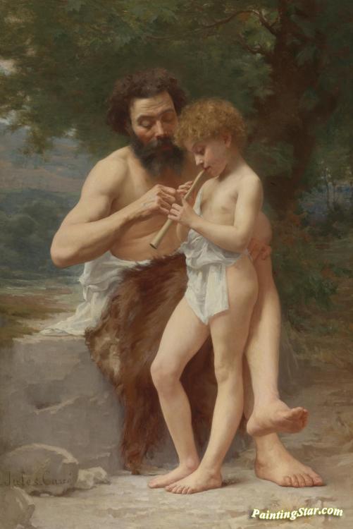 The Flute Lesson, Art Painting by Jules Cyrille Cave