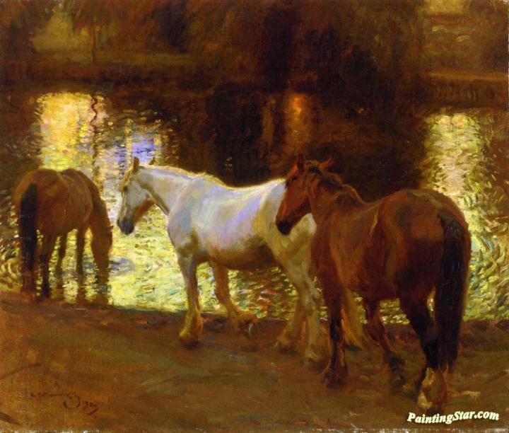The Ford at Dusk, Art Painting by Sir Alfred James Munnings