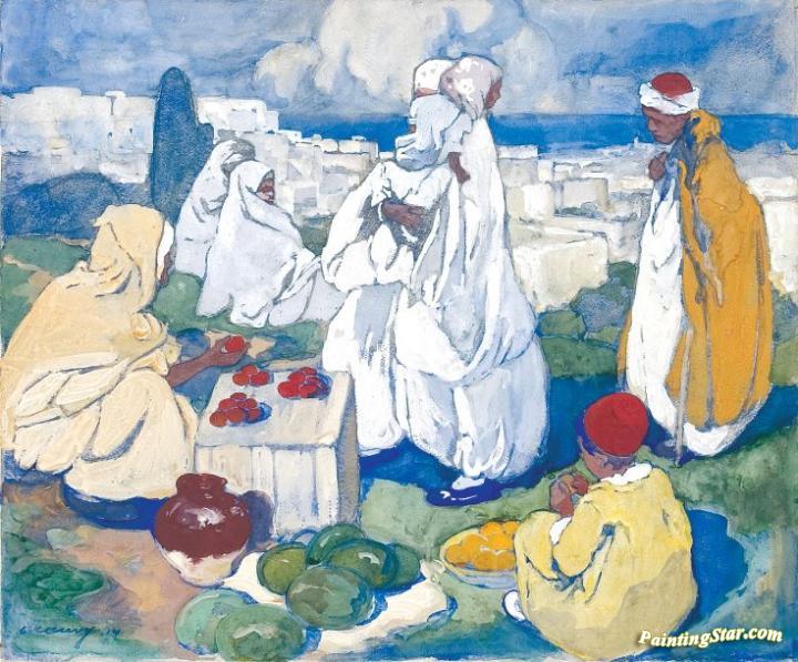 The Fruit Market above Algiers, Art Painting by Léon Cauvy