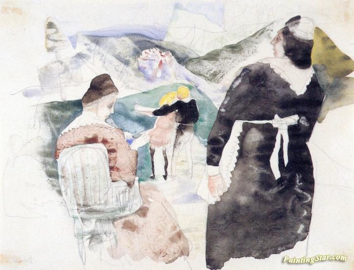 The Governess, Mrs. Grose, And The Children, Illustration No. 4 For The Turn Of The Screw, Art Painting by Charles Demuth