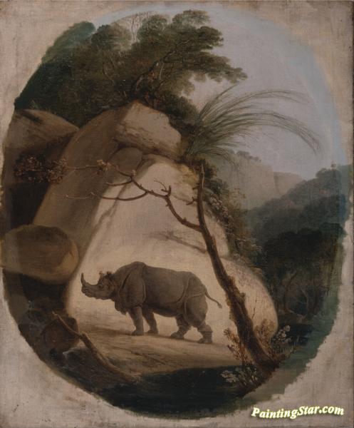 The Indian Rhinoceros, Art Painting by Thomas Daniell