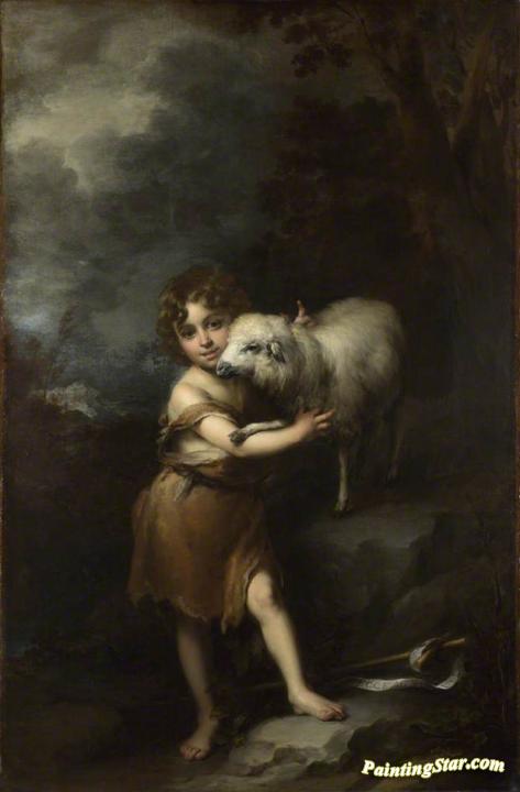 The Infant John the Baptist with a Lamb, Art Painting by Bartolomé Esteban Murillo