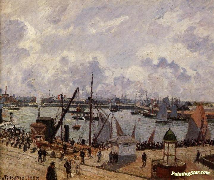 The Inner Harbor, Le Havre - Morning Sun, Rising Tide, Art Painting by Camille Pissarro