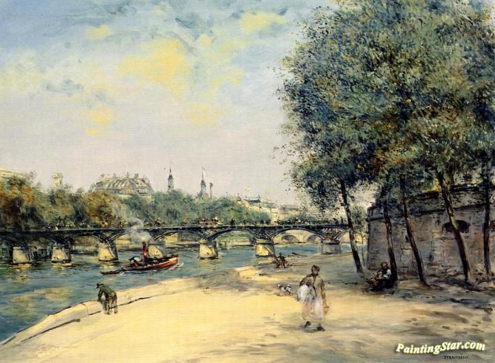 The Institute de France and the Pont des Arts, Paris, Art Painting by Jean-François Raffaëlli