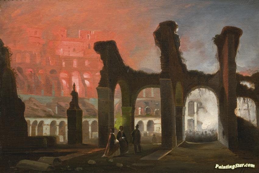 The Interior Of The Colosseum Illuminated By Fireworks, Art Painting by Ippolito Caffi