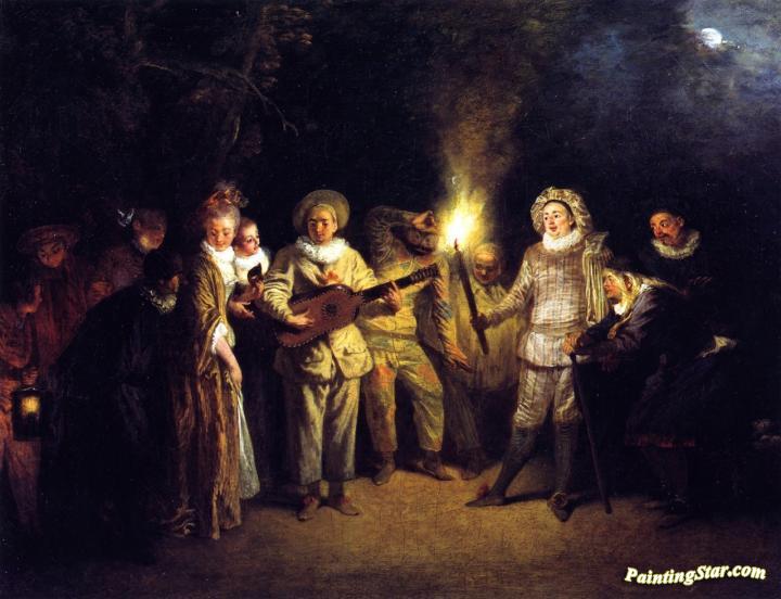 The Italian Theater, Art Painting by Jean-Antoine Watteau