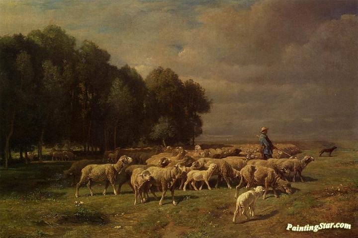 The Large Flock, Art Painting by Charles-Émile Jacque
