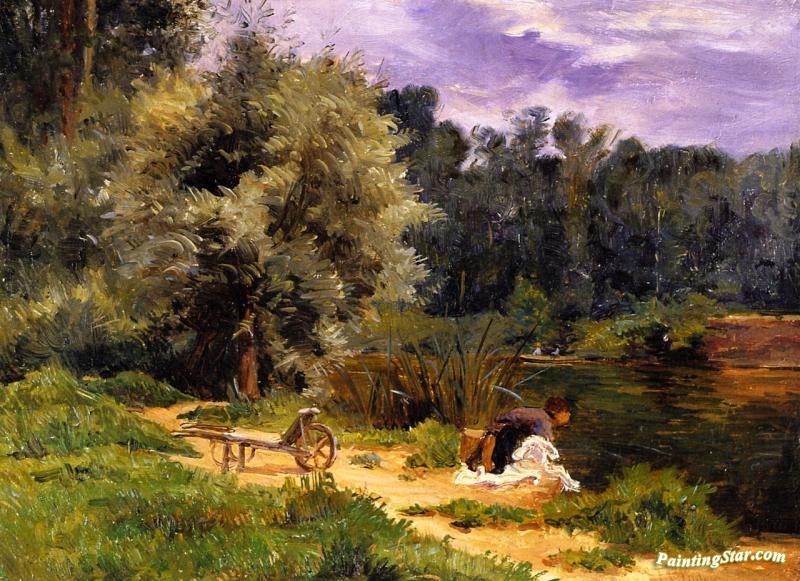The Laundress, Grez, Art Painting by Frederic Porter Vinton