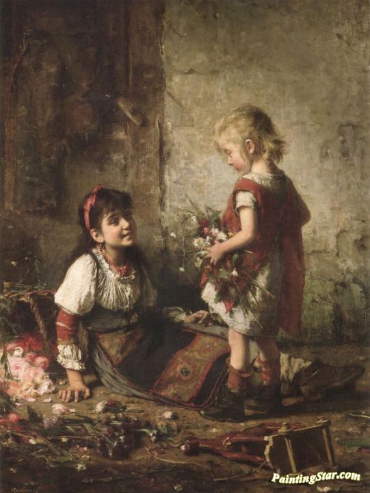 The little flower girls, Art Painting by Alexei Harlamoff