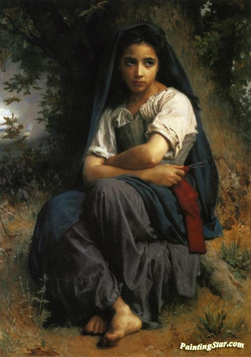 The Little Knitter, Art Painting by William Adolphe Bouguereau