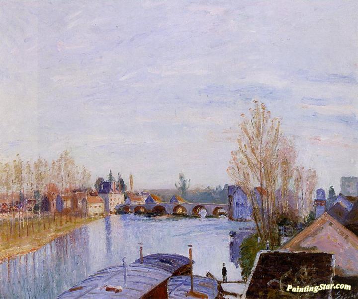 The Loing at Moret, the Laundry Boat, Art Painting by Alfred Sisley
