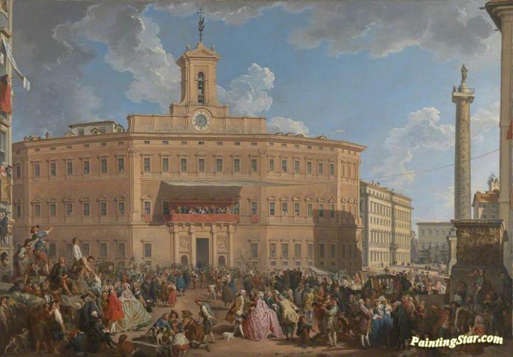 The Lottery in Piazza di Montecitorio, Art Painting by Giovanni Paolo Pannini