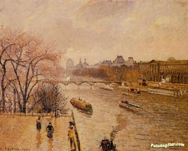The Louvre: Afternoon, Rainy Weather, Art Painting by Camille Pissarro