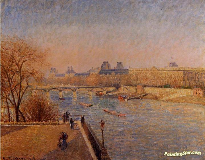 The Louvre: Winter Sunshine, Morning, Art Painting by Camille Pissarro