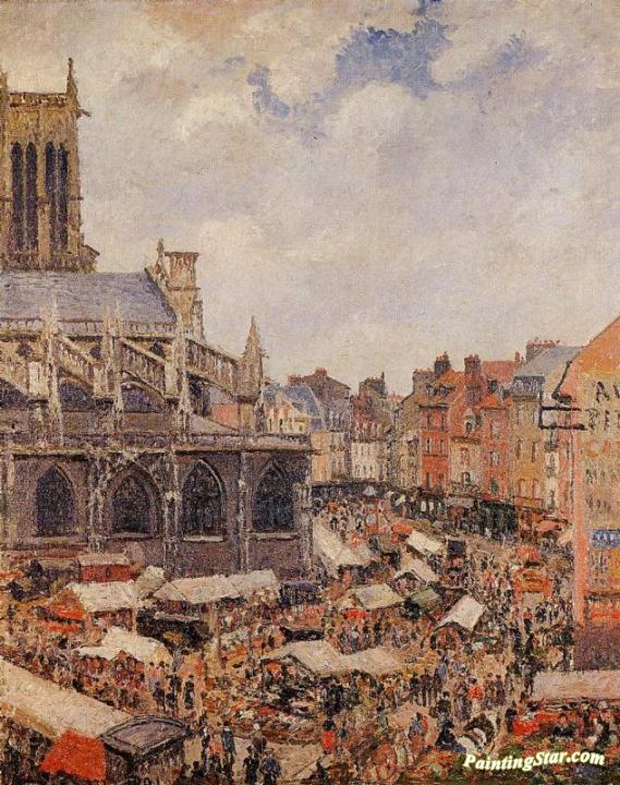The Market by the Church of Saint-Jacques, Dieppe, Art Painting by Camille Pissarro