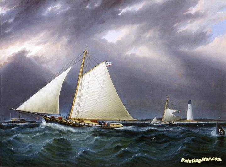 The Match between the Yachts 'Vision' and 'Meta' - Rough Weather, Art Painting by James E. Buttersworth