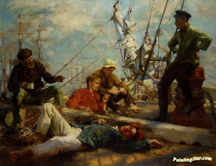 The midday rest sailors yarning, Art Painting by Henry Scott Tuke